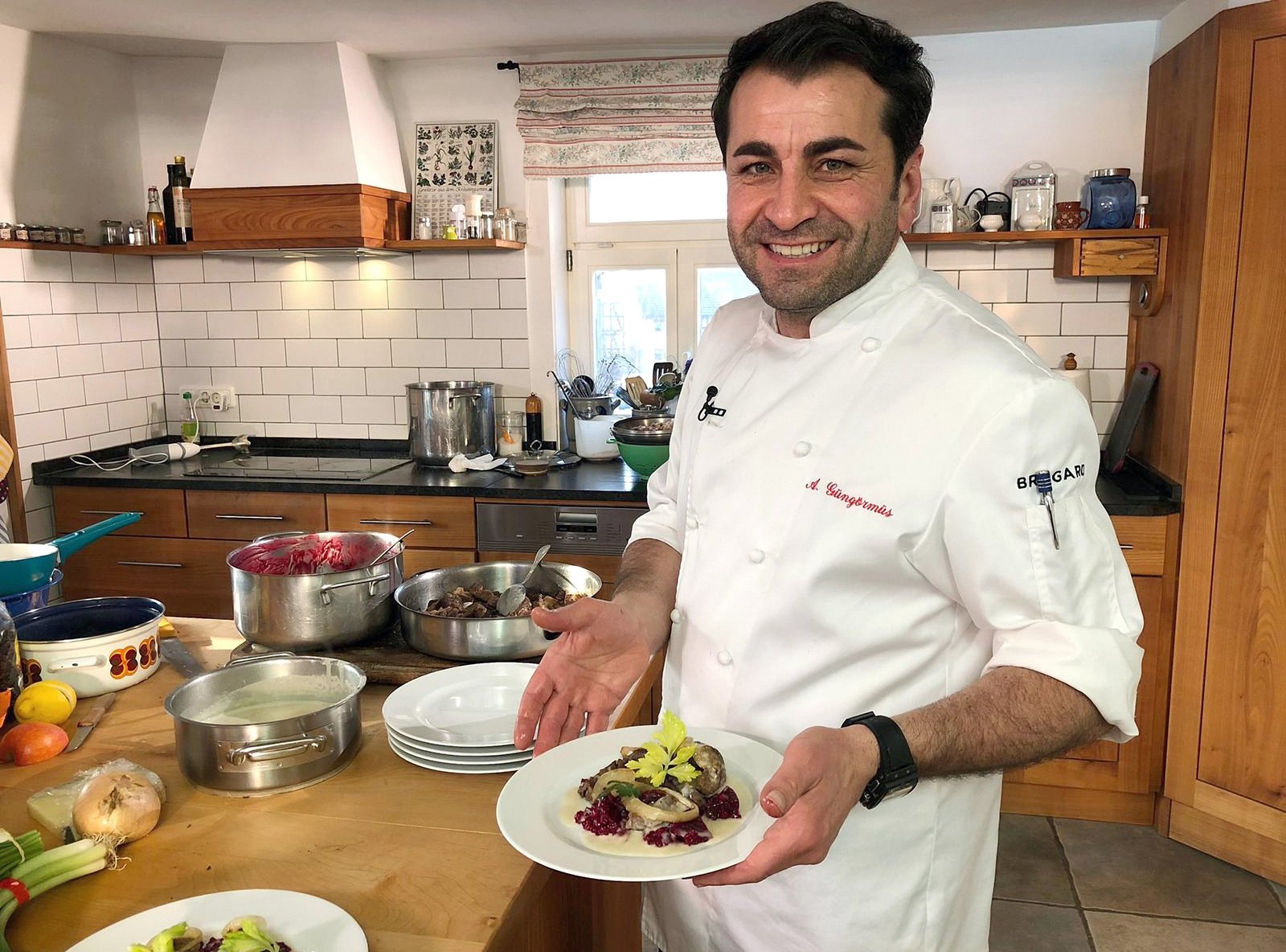 Zweierlei von der Gans mit Dattelwirsing und Apfel-Rosmarinstampf von Ali GüngörmüsStarkoch Ali Güngörmüs.Bild: © HR