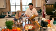 Lammrouladen mit Wirsingpralinen von Ali GüngörmüsKatja Berbalks Tochter Anna schaut dem Sternekoch Ali Güngörmüs in der Küche iher Mutter beim Kochen zu.Bild: © HR
