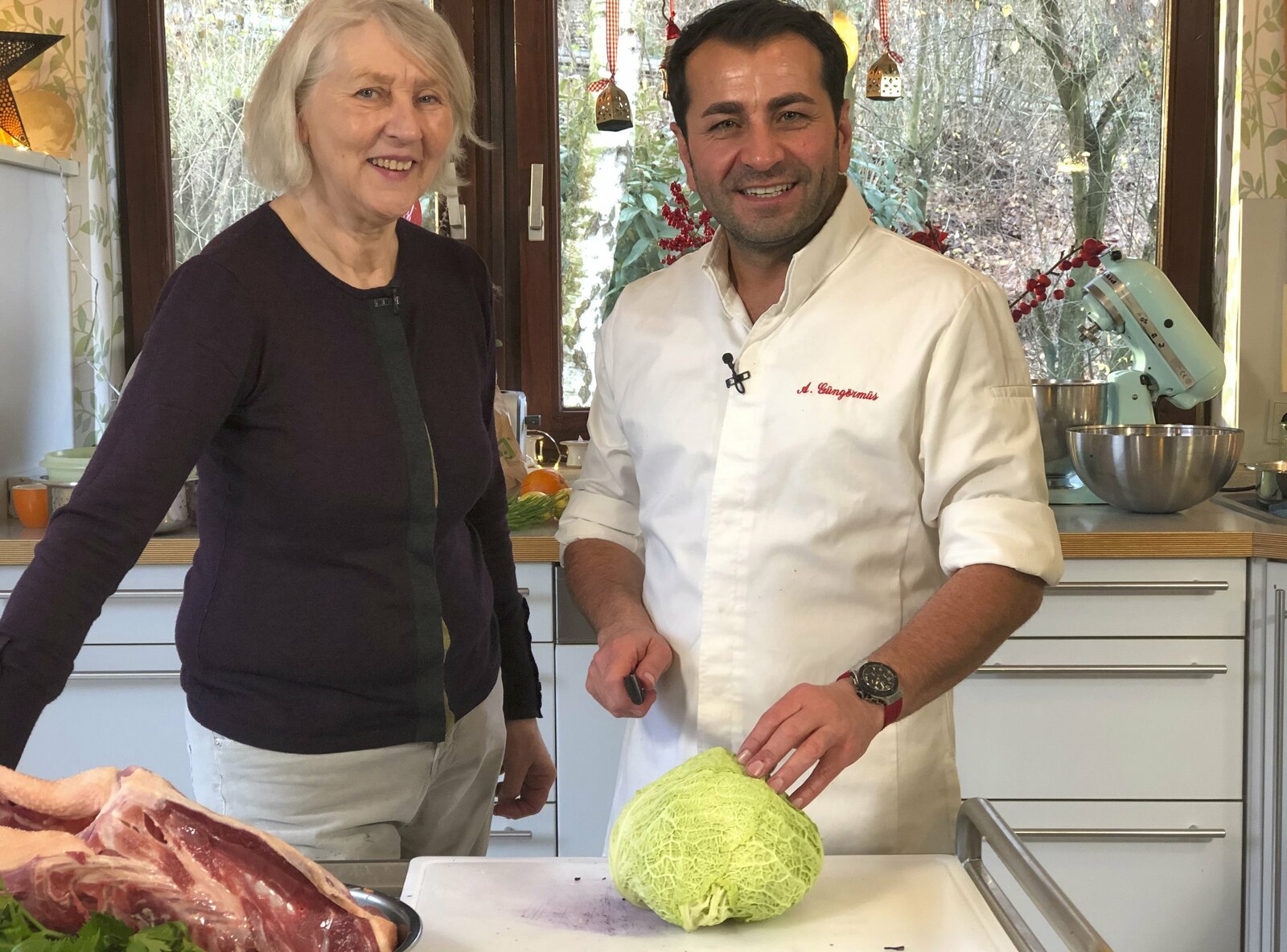 Kalbfleischfrikadellen im Spitzkohlmantel von Ali GüngörmüsBrigitte Eberle aus Gießen fordert Koch-Profi Ali Güngörmüs mit traditionellen hessischen Gerichten ihrer Oma heraus.Bild: © HR