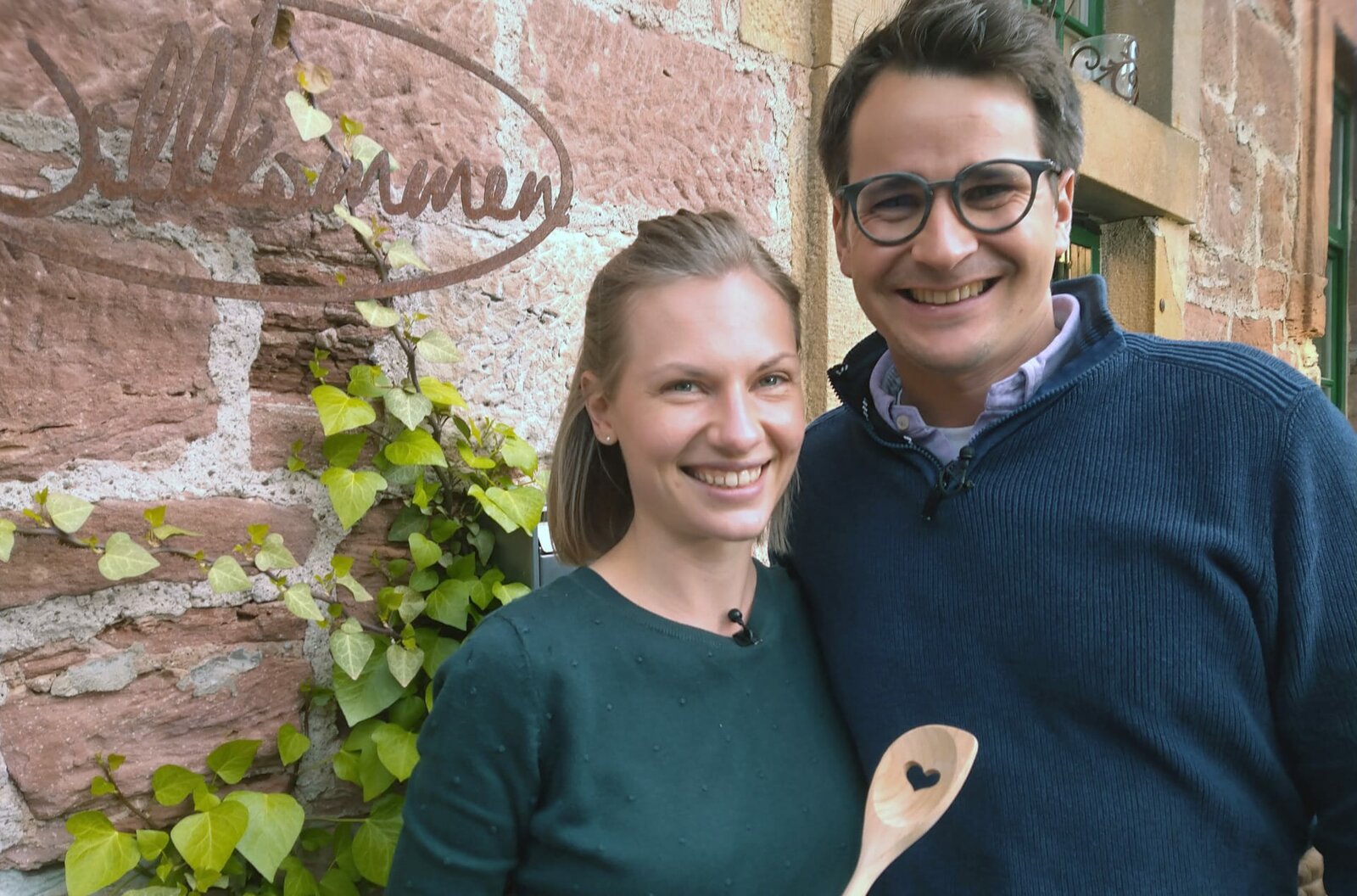 Ricotta-Tortellini mit grünem Spargel und Wildkräuter-Gremolata von Ali GüngörmüsMarie und Philipp aus Osthessen kochen vegetarisch mit vielen vor der Haustür gesammelten Wildkräuter.Bild: © HR