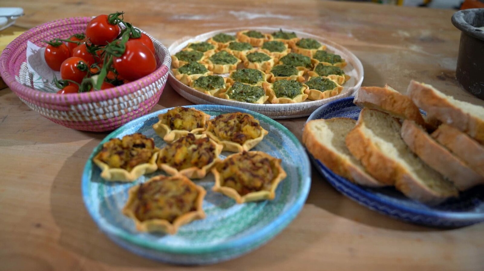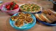 Serena Loddos Vorspeise: Coccoi Prena mit Kartoffel-Käse-Pfifferling-Füllung und mit Spinat-Ricotta-Pecorino-Füllung.Bild: © HR