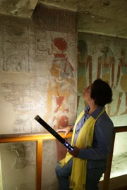Der einsame SargLuxor, Egypt - Professor Salima Ikram investigates the highly decorated Tomb of Queen Tawosret in the Valley of the Kings. These beautiful illustrations depict many powerful gods, as well as fierce demons from the Book of the Dead.Bild: © Copyright © The National Geographic Channel.