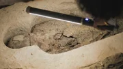 Das gebrochene SiegelDer Archäologe Mohammed Rehan betritt den 4 m tiefen Schacht L25 auf dem Gelände der Mumienwerkstatt von Saqqara. Diese kleine Kammer enthält Beweise für antike Verbrechen und gewaltsame Zerstörung - die beiden Sarkophage hier wurden in der Antike geraubt und zerstört.Bild: © National Geographic/Will Churchill / National Geographic / Will Churchill
