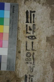 Die Diener der SchlangengöttinA photographic record of part of the painted inscription on the sarcophagus of Tjanimit. This first section mentions that Tjanimit is a priest of the great god Amun, and of the mysterious serpent goddess Niut-Shaes. The snake hieroglyph forming part of her name lies towards the bottom of the image.Bild: © Copyright © The National Geographic Channel.