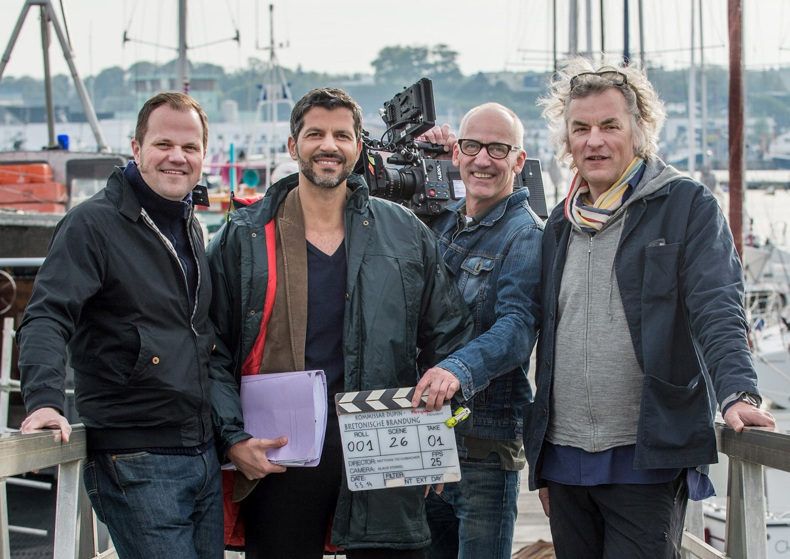 Bretonische BrandungARD DEGETO In der Bretagne haben heute die Dreharbeiten zu „Kommissar Dupin – Bretonische Brandung“, dem zweiten Film aus der neuen Fernsehreihe „Kommissar Dupin“, begonnen. Neben Pasquale Aleardi in der Hauptrolle spielen Ludwig Blochberger, Jan Georg Schütte, Annika Blendl, Marie-Lou Sellem, Alma Leiberg, Esther Zimmering u. a. Gedreht wird unter der Regie von Matthias Tiefenbacher voraussichtlich bis zum 3. Juni 2014 in Concarneau und auf den Glénan-Inseln Von links nach rechts: Mathias Lösel, Pasquale Aleardi, Klaus Merkel, Matthias Tiefenbacher.Bild: © ARD Degeto/Wolfgang Ennenbach