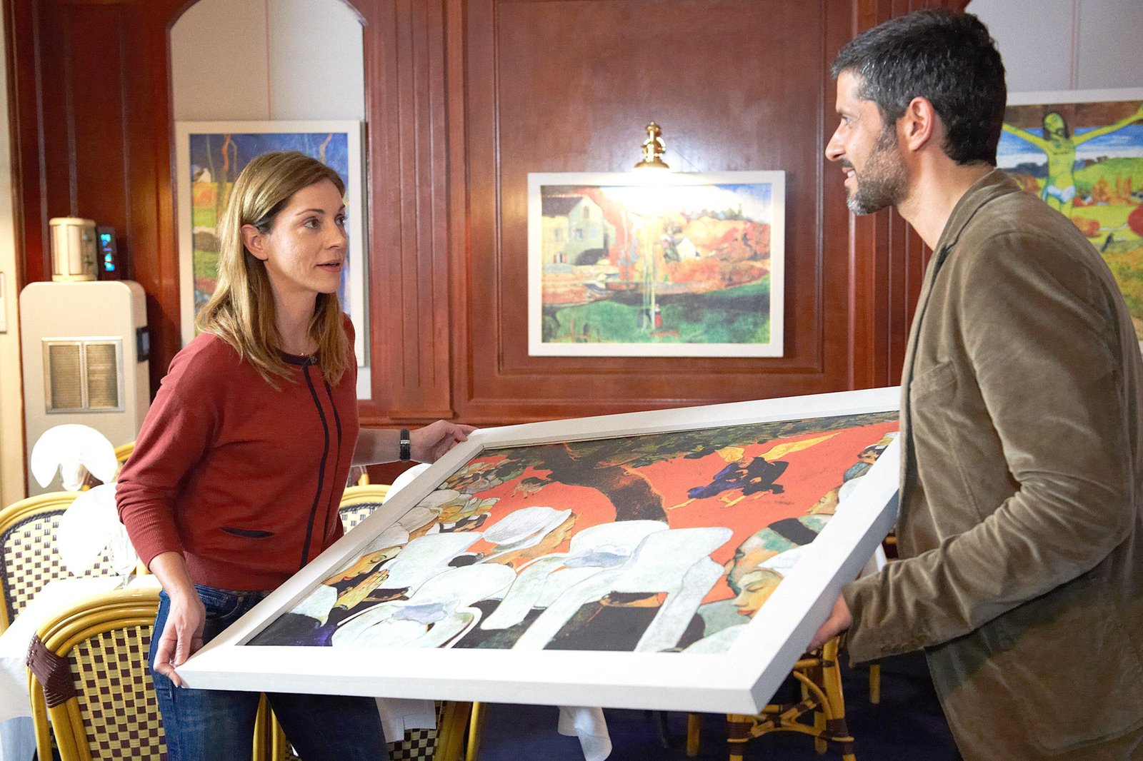 Bretonische VerhältnisseNDR Fernsehen KOMMISSAR DUPIN - BRETONISCHE VERHÄLTNISSE, am Donnerstag (25.09.14) um 22:00 Uhr. Kommissar Dupin (Pasquale Aleardi) und die Kunstexpertin Morgane Cassel (Ulrike C. Tscharre) wollen prüfen, ob es sich bei dem Gemälde um einen echten Gaugin handelt - oder nicht.Bild: © NDR/Degeto/Sandra Hoever