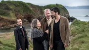 Bretonische FlutSkurriler Leichenfundort: Am Friedhof über dem Meer tauschen sich Inspektor Kadeg (Jan Georg Schütte, li.), die eigenwillige Joséphine Jumeau (Krista Stadler), Bürgermeister Antoine Manet (Ludger Pistor, Mitte) und Kommissar Dupin (Pasquale Aleardi, re.) aus.Bild: © ARD Degeto/Wolfgang Ennenbach