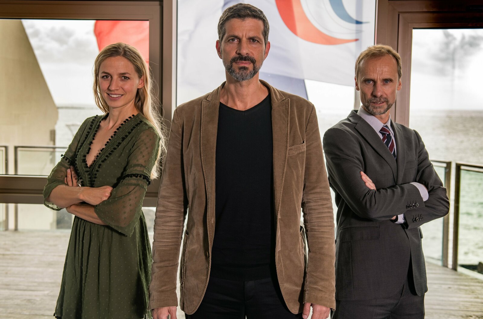 Bretonisches VermächtnisEin eingespieltes Team: Kommissar Dupin (Pasquale Aleardi) mit seiner Assistentin Nolwenn (Annika Blendl) und Inspektor Kadeg (Jan Georg Schütte, re.).Bild: © ARD Degeto/Wolfgang Ennenbach