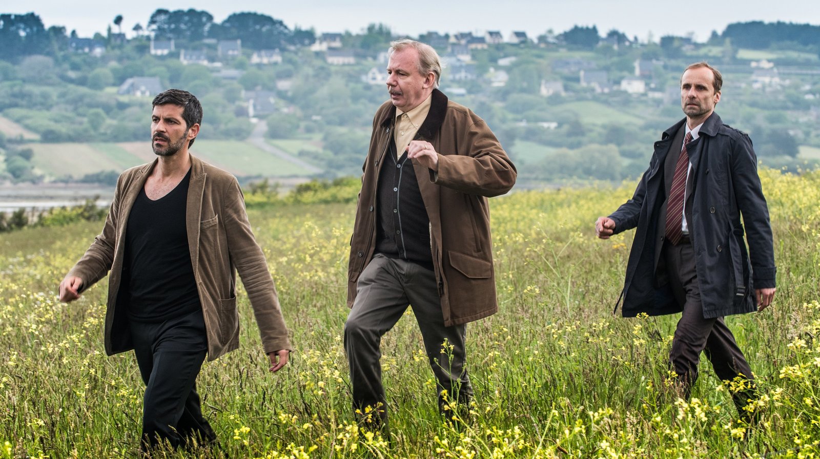 Bretonische FlutDer Wiesenwanderweg führt zum Leichenfundort: Kommissar Dupin (Pasquale Aleardi, li.), Bürgermeister Antoine Manet (Ludger Pistor, Mitte) und Inspektor Kadeg (Jan Georg Schütte, re.).Bild: © ARD Degeto/Wolfgang Ennenbach