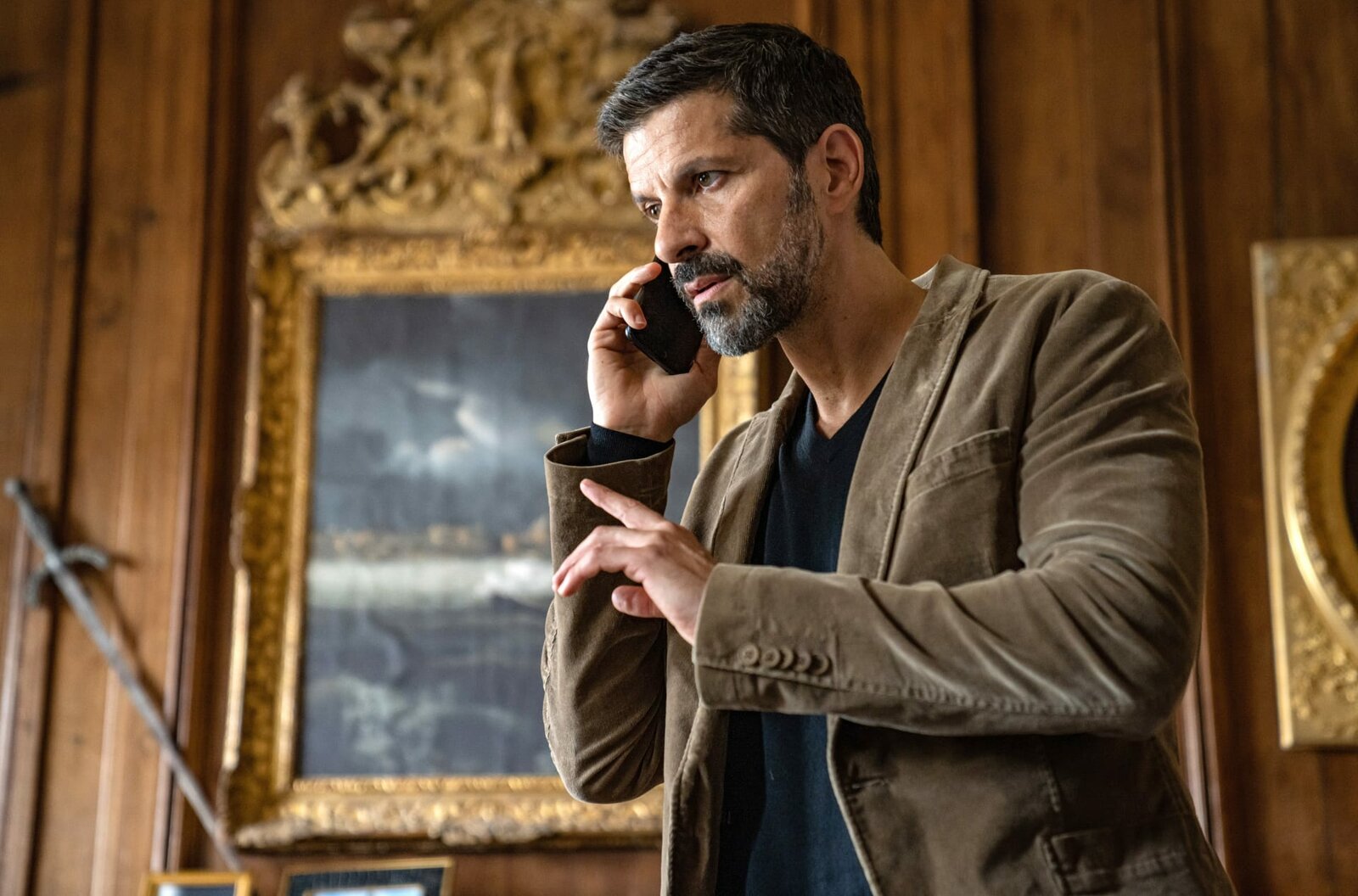 Bretonisches GoldAuge in Auge: Kommissar Dupin (Pasquale Aleardi) nimmt einen Verdächtigen ins Visier.Bild: © rbb/ARD Degeto/Wolfgang Ennenbach