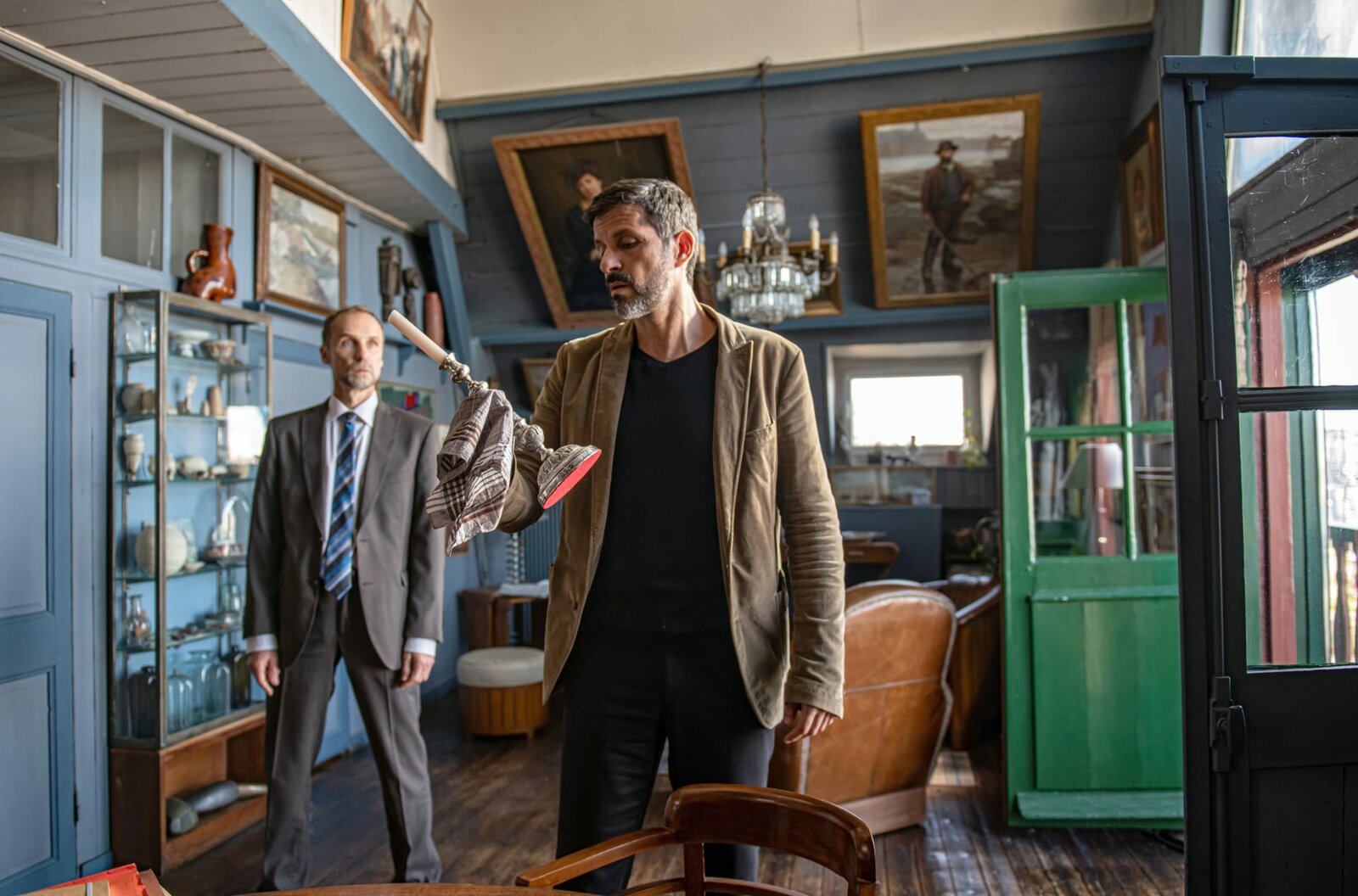 Bretonisches VermächtnisDupin (Pasquale Aleardi) rekonstruiert den Tathergang zusammen mit Kadeg (Jan Georg Schütte, li.).Bild: © ARD Degeto/Wolfgang Ennenbach