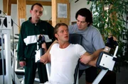 Duft des TodesKommissar Richie Moser (Tobias Moretti, r.) und Stockinger (Karl Markovics, l.) fühlen dem verdächtigen Hubert Zauner (Bruno Eyron, M.) im Fitnesscenter auf den Zahn.Bild: © Sat.1 Eigenproduktionsbild frei