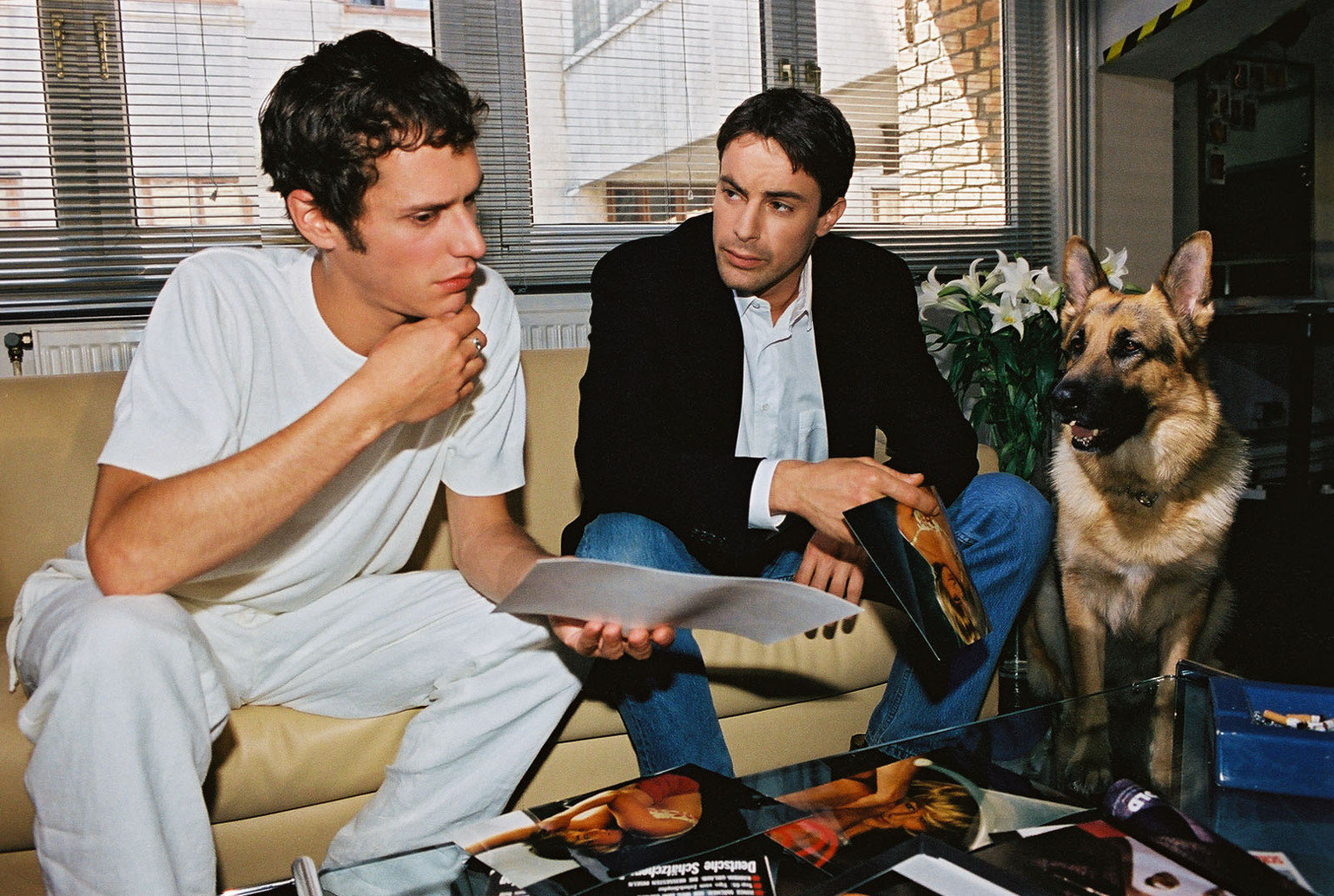 Der schöne TodKommissar Brandtner (Gedeon Burkhard, r.) und Rex ermitteln bei Szene-Fotograf Felix Rieder (Max Meyer, l.), der zuletzt mit der vermissten Iris Manker gesehen wurde.Bild: © Sat.1 Eigenproduktionsbild frei