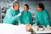 Blond, hübsch, totDr. Graf (Gerhard Zemann, l.) erklärt Niki (Elke Winkens, M.) und Marc (Alexander Pschill, r.) die genaueren Umstände, die zum Tod der jungen Frau führten.Bild: © Sat.1 Eigenproduktionsbild frei