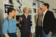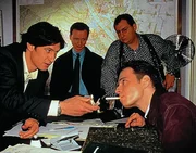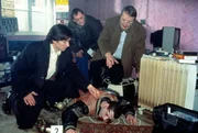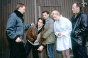 Der schöne TodElisabeth Manker (Lotte Ledl, 2.v.l.) hat ihre Tochter auf den gruseligen Fotos von Felix Rieder erkannt. Kommissar Brandtner (Gedeon Burkhard, r.), Fritz Kunz (Martin Weinek, 2.v.r.) und Christian Böck (Heinz Weixelbraun, l.) trauen dem Fotografen nicht, der behauptet, mit dem Verschwinden von Iris nichts zu tun zu haben ...Bild: © Sat.1 Eigenproduktionsbild frei