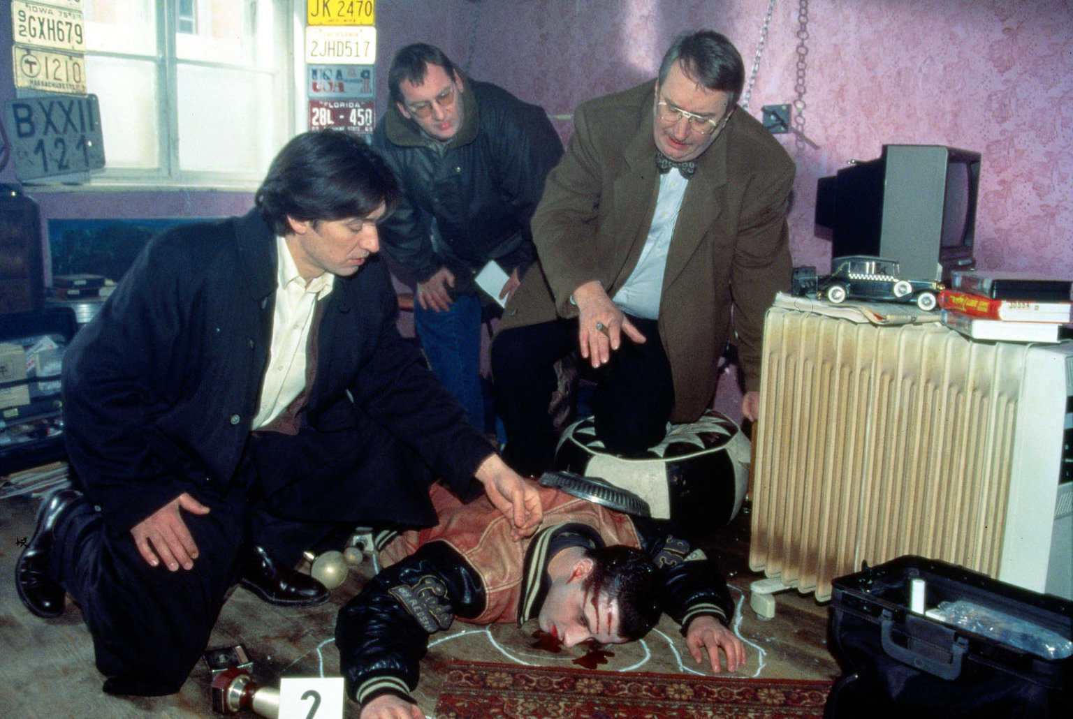 Blutrote Rosen"Kommissar Rex", "Blutrote Rosen." Russische Killer, als Blumenboten getarnt, erschießen ein Ehepaar. Kurz darauf dringen sie in das Haus eines Wissenschaftlers ein und nehmen die Familie als Geisel. Kommissar Moser schließt Rex in das Haus mit den Geiselgangstern ein. Die Killer werden misstrauisch. Rex ist auf sich allein angewiesen.Im Bild (v.li.): Fritz Muliar (Max Koch), Tobias Moretti (Richie Moser).Bild: © ORF 2