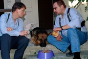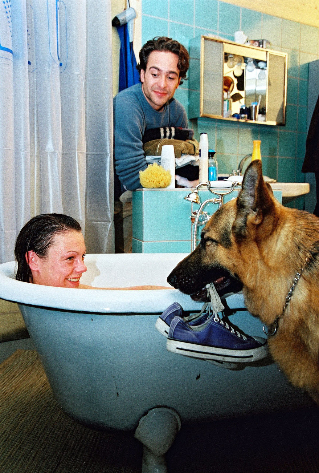 Ein Zeuge auf vier PfotenNiki (Elke Winkens, l.) nimmt bei Marc (Alexander Pschill, r.) ein Bad und wird von Rex umsorgt ...Bild: © Sat.1 Eigenproduktionsbild frei