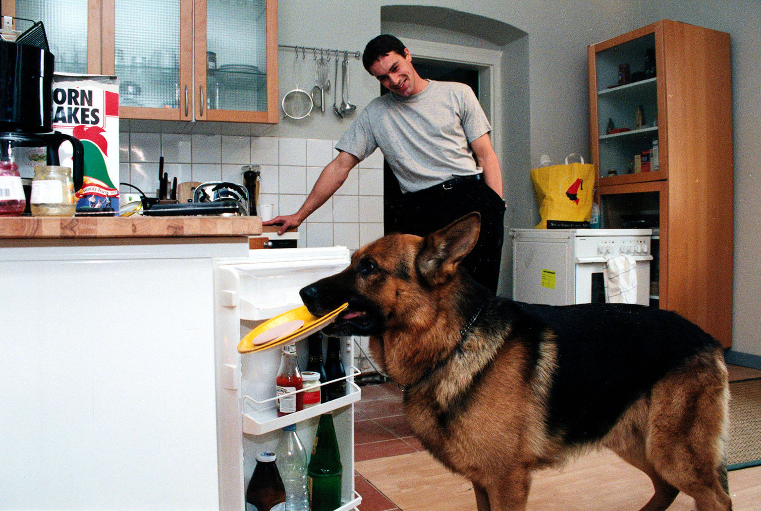 Furchtbare WahrheitRex ist der Meinung, jetzt sei (Fr-)Essenszeit. Da Herrchen Alexander Brandtner (Gedeon Burkhard) keinerlei Anstalten macht, ein Menü zu servieren, heißt es: Selbst ist der Hund!Bild: © Sat.1 Eigenproduktionsbild frei
