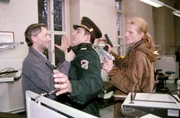 Der Neue - Teil 1Die Stimmung ist nach dem Tod von Moser gedrückt. Vor allem Rex trauert. Böck (Heinz Weixelbraun, l.) und Höllerer (Wolf Bachofner, r.) versuchen vergeblich, Rex aufzumuntern.Bild: © Sat.1 Eigenproduktionsbild frei