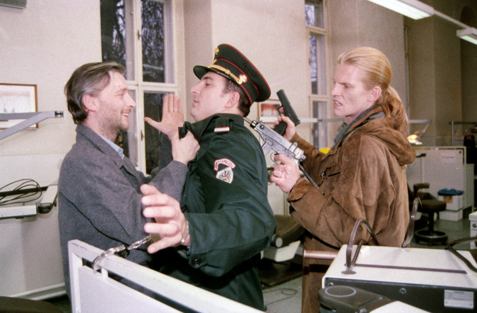 Tanz auf dem VulkanDie beiden Verbrecher Borek (Henryk Ryszard Nolewajka, li.) und Kaschinski (Grzegorz Emanuel, re.) fesseln den Polizisten und fliehen.Bild: © ORF2