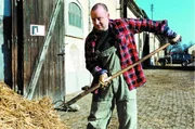 Das MillionenpferdKommissar Böck (Heinz Weixelbraun) ist auf der Suche nach dem Springpferd Sirius.Bild: © Sat.1 Eigenproduktionsbild frei