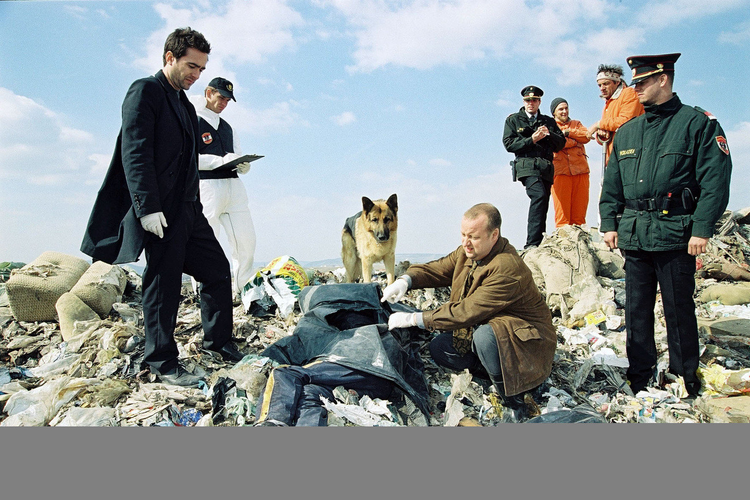 Tod eines KindesMit Hilfe von Rex haben Kommissar Richie Moser (Tobias Moretti, re.) und Ernst Stockinger (Karl Markovics) die Geldbörse des ertrunkenen Mädchens gefunden.Bild: © ORF2