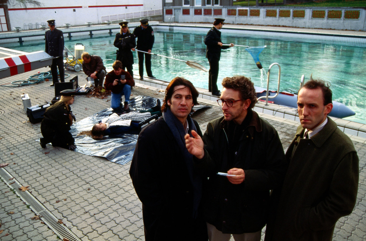 Tod eines KindesMitten im Winter wird die kleine Sabine tot in einem Freibad aufgefunden. Richie Moser (Tobias Moretti, l.), Assistent Stockinger (Karl Markovics, r.) und ein Spurensicherer (Ernst J. Laucher, M.) beraten über den Tathergang.Bild: © SAT.1 Eigenproduktionsbild frei