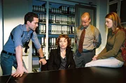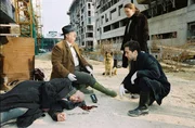 SchnappschussDr. Leo Graf (Gerhard Zemann, 2.v.l.) untersucht die Leiche, die auf einer Baustelle gefunden wurde. Mit Marc (Alexander Pschill, r.) und Niki (Elke Winkens, 2.v.r.) spekuliert er über den Tathergang ...Bild: © Sat.1 Eigenproduktionsbild frei