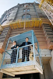 Blinde WutFritz Kunz (Martin Weinek, r.) ist undercover im Hotel der Familie Haller als Küchenhilfe angestellt. Kommissar Brandtner (Gedeon Burkhard, l.) soll aus dem Weg geräumt werden. Gut, dass sein neuer Kollege zur Stelle ist ...Bild: © Sat.1 Eigenproduktionsbild frei
