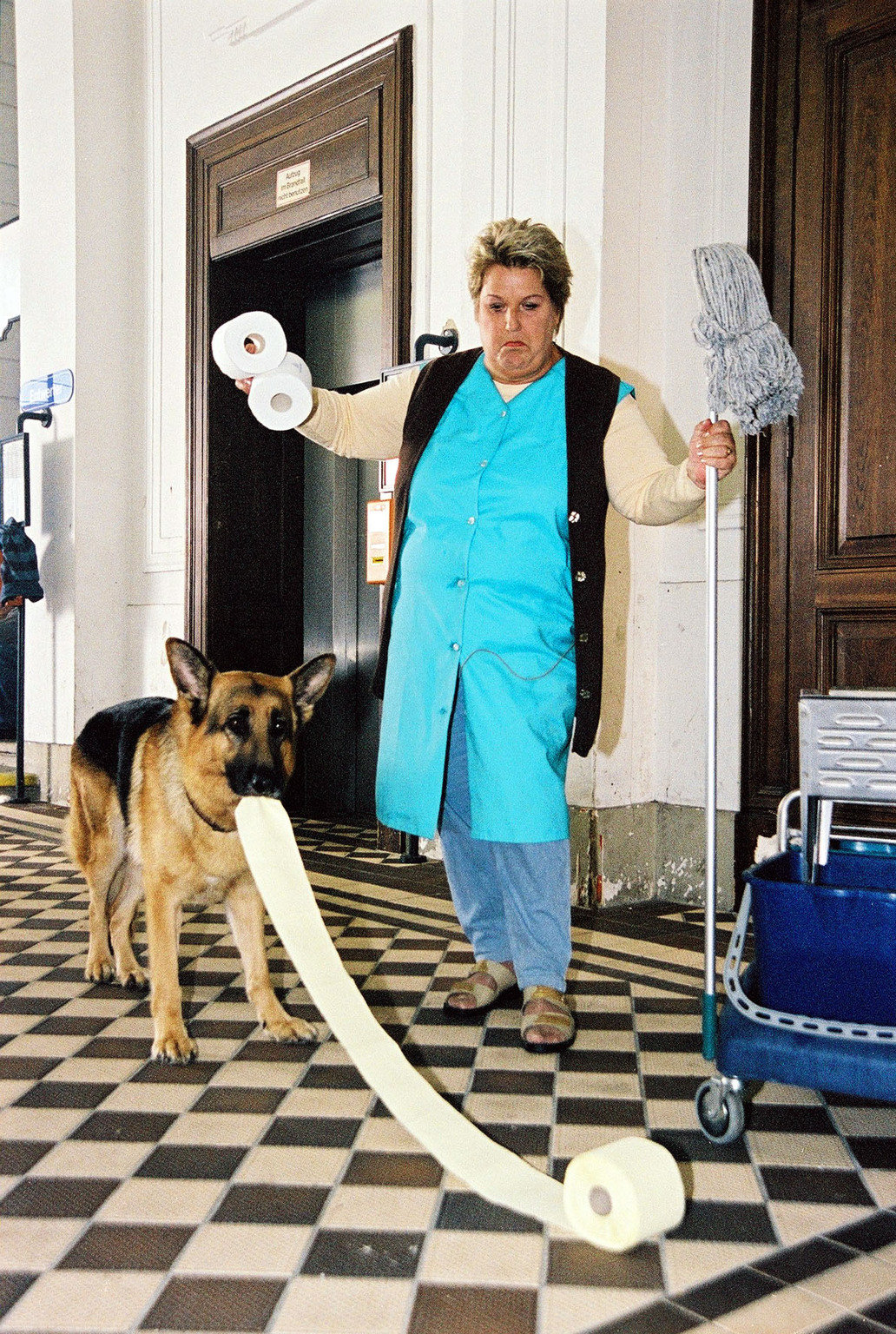 Ettrichs TaubeRex versucht vergeblich, der Putzfrau (Stefanie Werger) zu helfen.Bild: © Sat.1 Eigenproduktionsbild frei