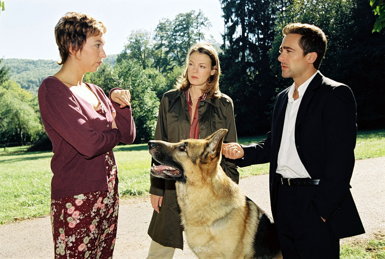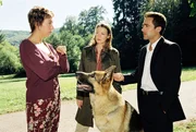 Die BabydealerChristian Böck (Heinz Weixelbraun, l.), Kommissar Brandtner (Gedeon Burkhard, M.) und Rex recherchieren am Fundort der Leiche des italienischen Vogelhändlers.Bild: © Sat.1 Gold