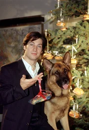 Ein Engel auf vier Pfoten - Teil 1Kommissar Moser (Tobias Moretti) und Rex vor dem festlich-fürstlich-würstlich geschmückten Weihnachtsbaum auf der Wache ...Bild: © Sat.1 Eigenproduktionsbild frei