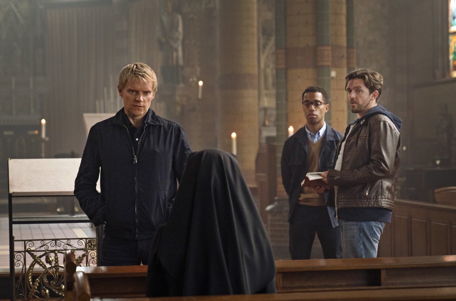 Rauschendes AmsterdamKommissar Piet Van der Valk (Marc Warren) und seine Kollegin Inspector Lucienne Hassel (Maimie McCoy, re.) suchen die Karmeliternonne Joan (Juliet Aubrey) auf.Bild: © ARD Degeto/Company Pictures/all3media international/Elmer van der Marel