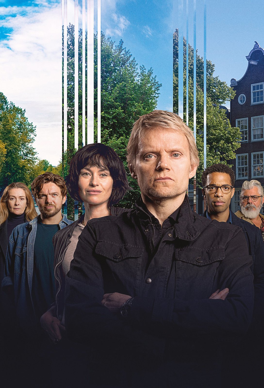 Zerrissenes AmsterdamARD Degeto KOMMISSAR VAN DER VALK - DUELL IN AMSTERDAM, "Van der Valk - Love in Amsterdam", am Montag (01.06.20) um 21:45 Uhr im ERSTEN. Der Amsterdamer Kommissar Piet Van der Valk (Marc Warren, Mitte) und sein Team Inspector Lucienne Hassel (Maimie McCoy, 3. v. li.), Sergeant Brad De Vries (Luke Allen-Gale), Job Cloovers (Elliot Barnes-Worrell), der Pathologe Hendrik Davie (Darrell D'Silva) und seine seine Chefin Julia Dahlman (Emma Fielding). © ARD Degeto/Company Pictures/all3media international, honorarfrei - Verwendung gemäß der AGB im engen inhaltlichen, redaktionellen Zusammenhang mit genannter Degeto-Sendung und bei Nennung "Bild: ARD Degeto/Company Pictures/all3media international" (S2+). ARD Degeto/Programmplanung und Presse, Tel: 069/1509-335, degeto-presse@degeto.deBild: © ARD Degeto/Company Pictures/all3 / ARD Degeto/Programmplanung und P