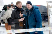 Eisige Schatten (1)Schreckliche Gewissheit für Kommissar William Wisting (Sven Nordin, li.) und seinen Kollegen Nils Hammer (Mads Ousdal, Mitte): Die vermissten Frauen wurden Opfer eines Serienmörders.Bild: © ARD Degeto/Wisting Production A/S/Agnete Brun