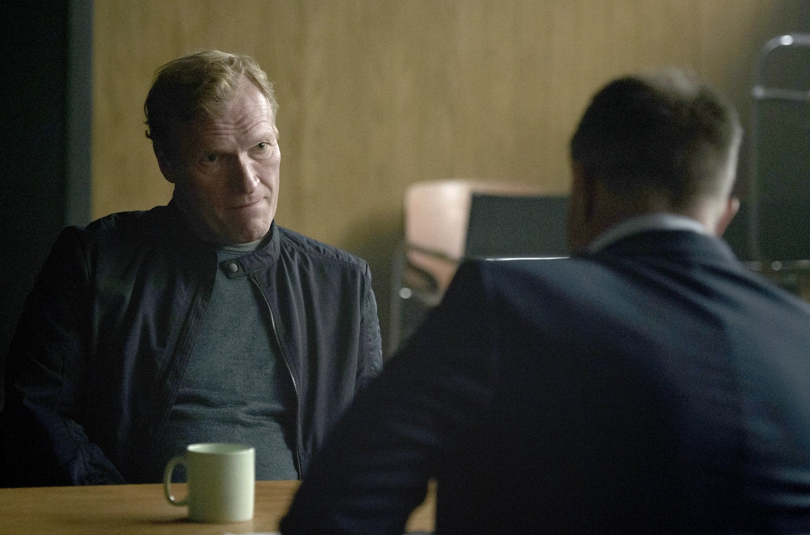 Jagdhunde (1)Nils (Mads Ousdal) trifft sich mit seinem Kollegen Wisting (Sven Nordin).Bild: © WDR/Degeto