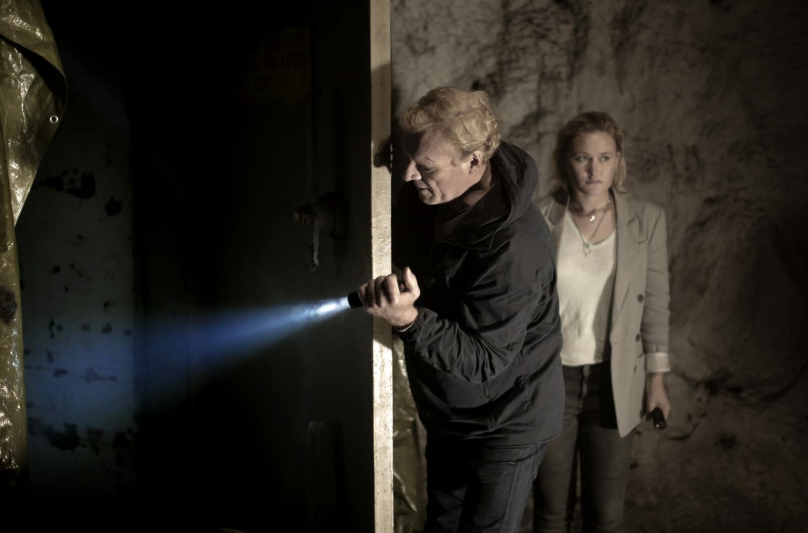 Jagdhunde (2)Wisting (Sven Nordin) und Line (Thea Green Lundberg) riskieren ihr Leben.Bild: © WDR/Degeto/Wisting Production A/S/Trygve Indrelid