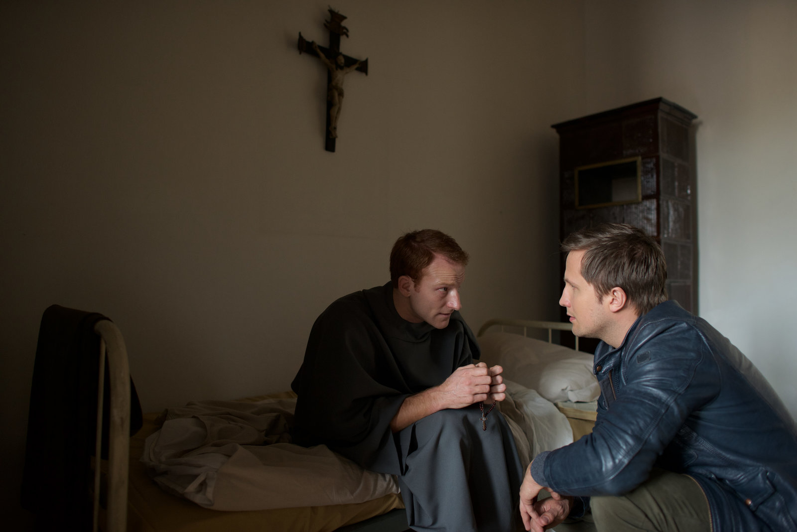 KreuzwegTom Brauer (Lasse Myhr, r.) versucht, dem verstörten Bruder Anton (Maximilian Dirr, l.) Informationen über das Opfer zu entlocken. Aber wieso ist Bruder Anton so aufgewühlt?Bild: © ZDF und Bernd Schuller