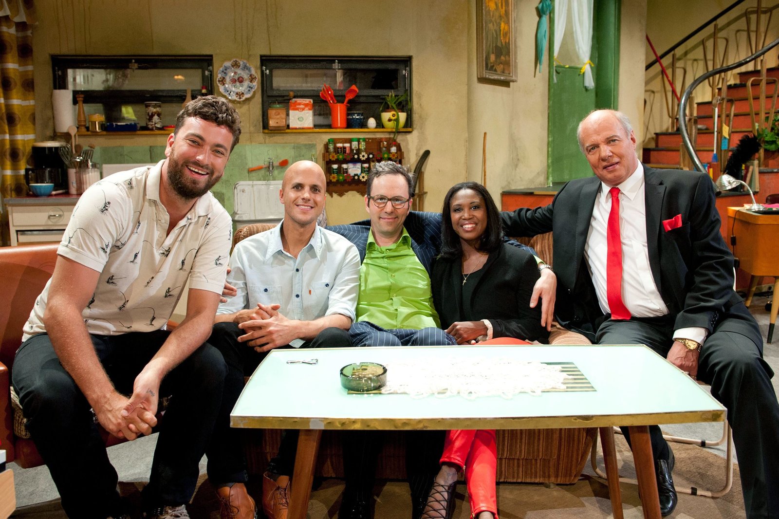 Motsi Mabuse, Marteria, Milowrbb Fernsehen KRÖMER – LATE NIGHT SHOW (6), am Samstag (25.04.15) um 22:20 Uhr. Kurt Krömer lädt ins Berliner Ensemble zur neuen Staffel der "Krömer - Late Night Show" (v.l.): Rapper Materia , Sing- and Songwriter Milow, Gastgeber Kurt Krömer, Tänzerin Motsi Mabuse und Ingo MeersmannBild: © rbb/Max Kohr