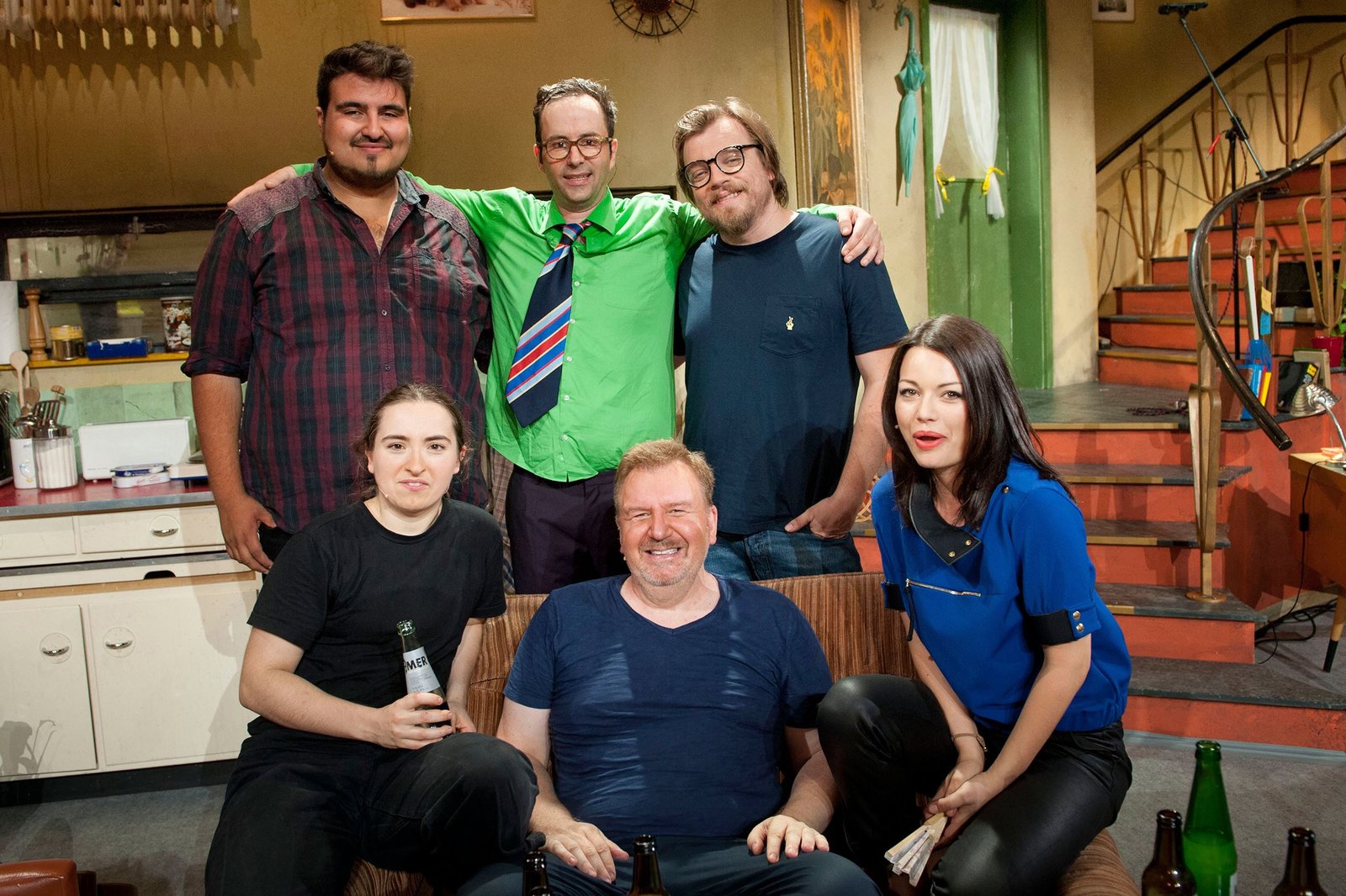 Cosma Shiva Hagen, Steve Blame, Nilz Bokelberg, Georg auf Liederrbb Fernsehen KRÖMER – LATE NIGHT SHOW (7), am Samstag (02.05.15) um 22:20 Uhr. Kurt Krömer lädt ins Berliner Ensemble zur neuen Staffel der "Krömer - Late Night Show" (hinten v.l.n.r.): Georg auf Lieder, Kurt Krömer, Nils Bokelberg; (vorne v.l.n.r.): Benjamin Wand, Steve Blame und Cosma Shiva Hagen.Bild: © rbb/Max Kohr