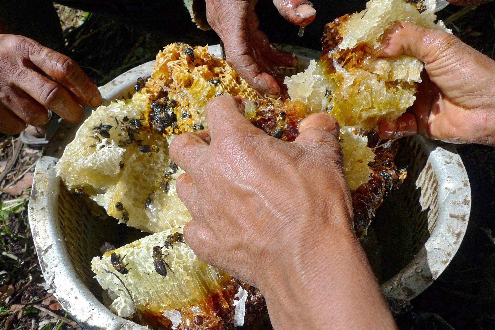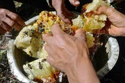 • Im Himalaja wird der Honig der riesigen Felsenbiene geerntet.