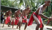 • Eine Männer-Tanzgruppe ist ein wichtiger Teil der Erst-Geburt-Zeremonie. Der Tanz drückt die sexuelle Potenz des Mannes aus.