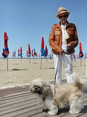 Urlaub in der Normandie - Das Seebad DeauvilleMicheline Philippeau führt ihren Hund "Viking" am Strand von Deauville spazierenBild: © ZDF und SWR/Julian Ringer