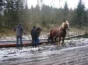 NDR Fernsehen LÄNDER - MENSCHEN - ABENTEUER, "Winter in Ostpreußens Zauberwald - Wiedersehen mit der Rominter Heide", am Donnerstag (05.01.12) um 21:00 Uhr. Rückepferd in der Rominter HeideBild: © NDR/RBB/Wolfgang Wegner