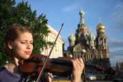 Städte am Meer: St. Petersburg - Russlands Fenster zum WestenIn den Sommermonaten verlagert Violinistin Anna ihr Training nach draußen, um sich an das Spielen vor Publikum zu gewöhnen.Bild: © BR/SWR/Olaf Bitterhoff