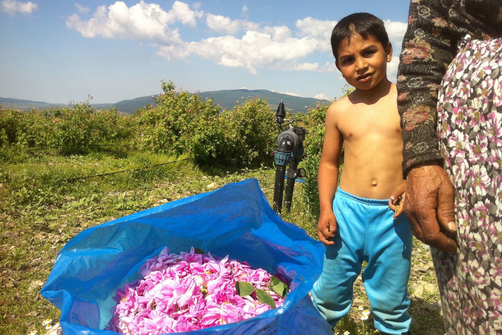 Im Mai ist die Zeit der Rosenernte in Bulgarien. Tausende Rosen Blüten wandern dann in blaue Säcke und werden später zu Rosenöl destilliert.Bild: © SWR/Matthias Ebert
