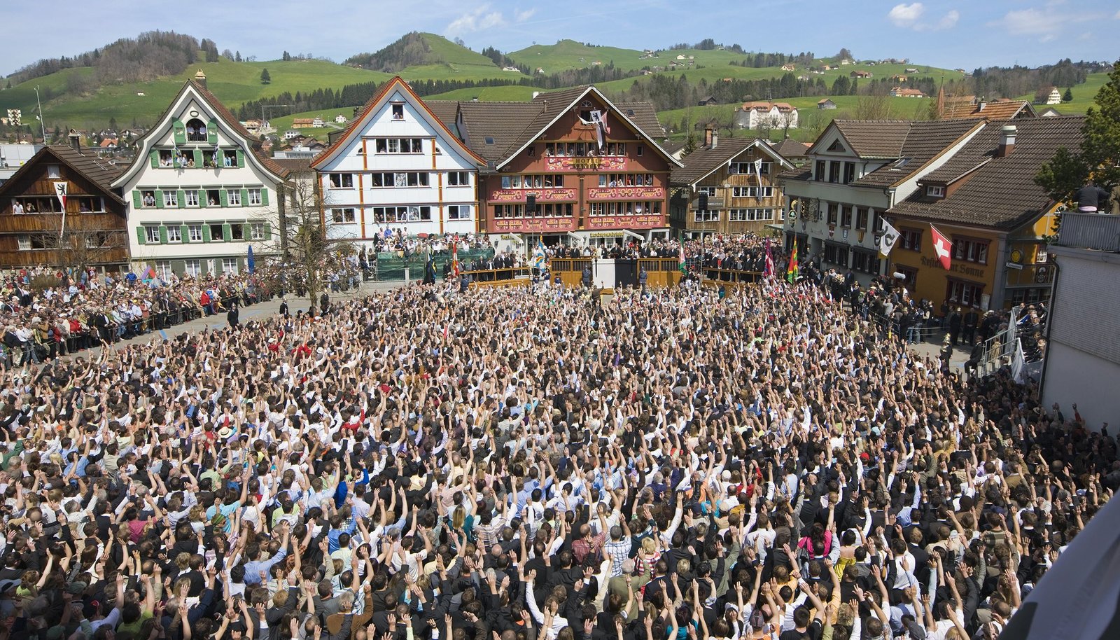 NDR Fernsehen LÄNDER - MENSCHEN - ABENTEUER, "Die Schweizer - unbekannte Nachbarn?", am Donnerstag (28.05.15) um 20:15 Uhr. Die Teilnehmer der Landsgemeinde von Appenzell Innerrhoden stimmen auf dem Landsgemeindeplatz per Handaufstrecken ab. Die Landsgemeinde findet immer am letzten Sonntag im April statt. Die Einwohner des Kantons fassen Beschlüsse und wählen die obersten Behörden.Bild: © NDR/Picture-Alliance/KEYSTONE