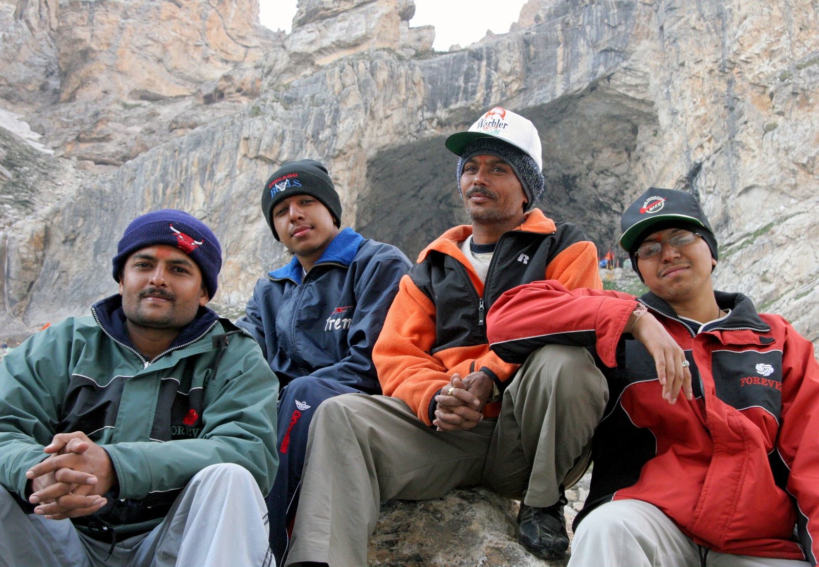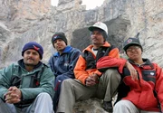Die Pilger Vijaay, Abhishek, Premal und Mukesh vor der Amarnath Höhle.Bild: © SWR/Rolf Lambert