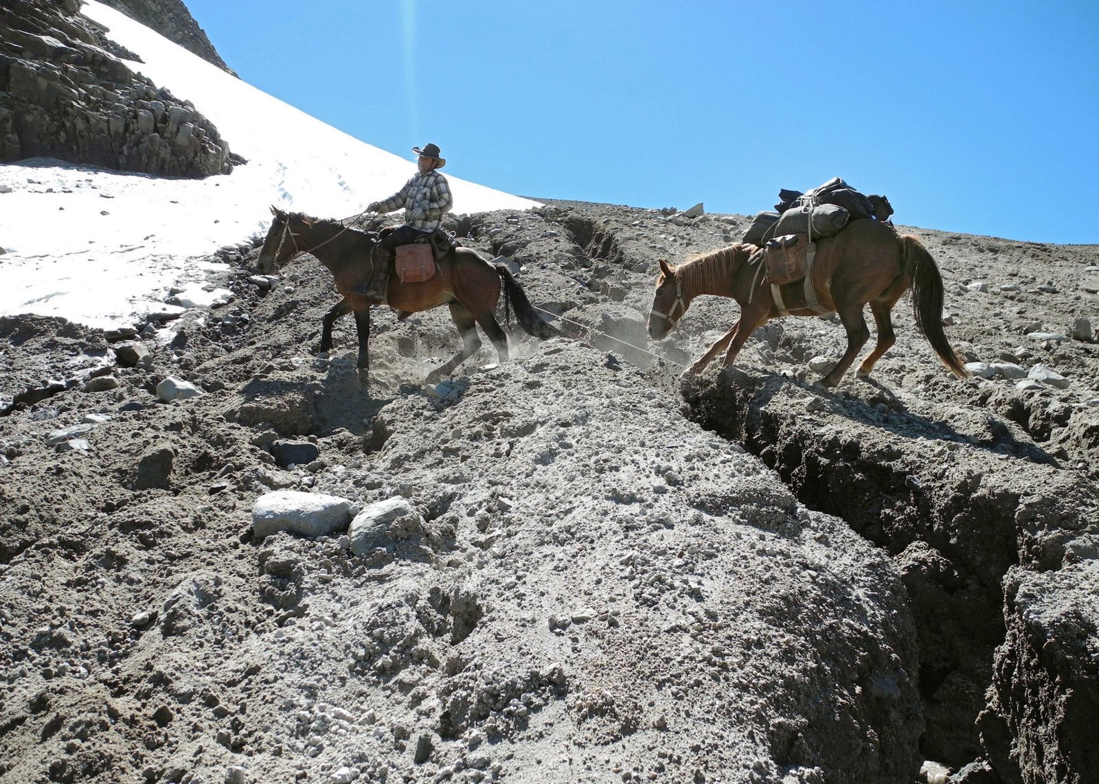 Der Aufstieg zum Gletscher Sollipulli ist schwer. Wenn oben auf dem Bergkamm in der Nordflanke mit 5 bis 900 Metern Abgründe rechts und links dichter Nebel aufkommt, spüren selbst die Pferde die Gefahr.Bild: © SWR/SWR/Joachim Krug