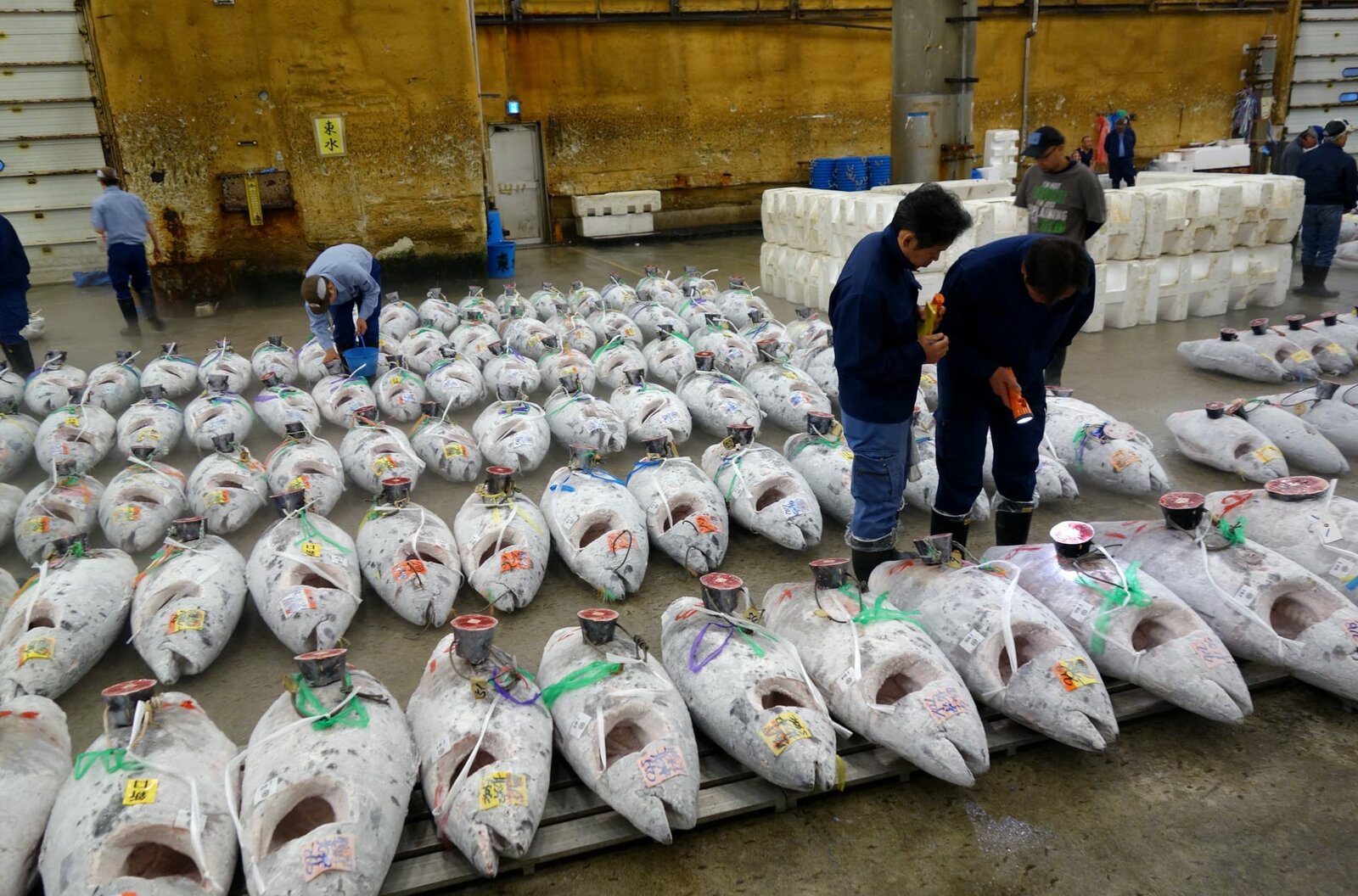 Thunfisch auf Tour - Tokios Fischmarkt zieht umJeder Händler hat seine eigenen Tricks, um die richtigen Fische zum Ersteigern zu finden.Bild: © Autentic